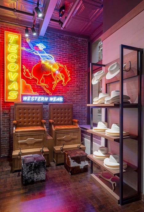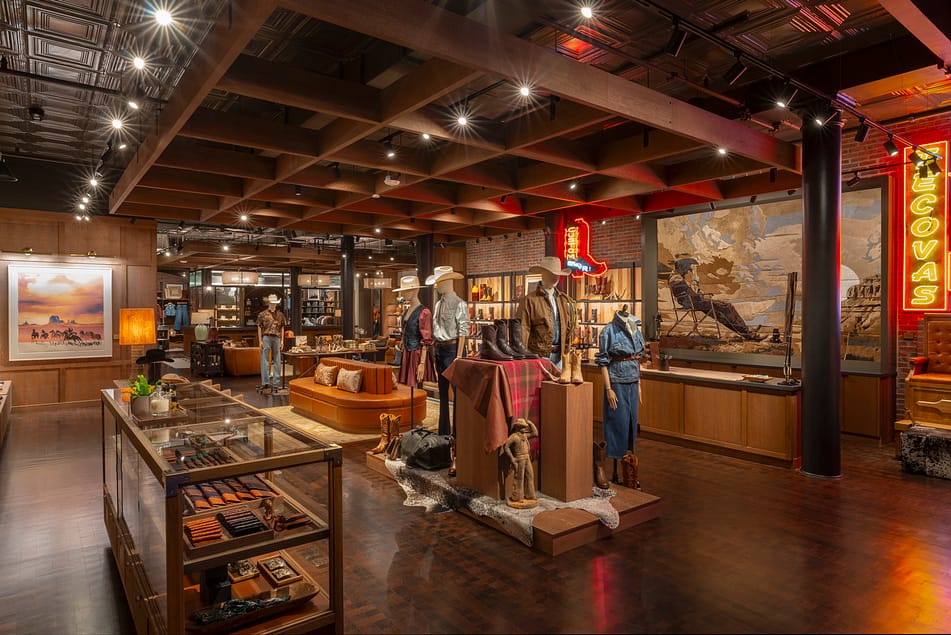 Conceived as a flagship experience, the store reflects Tecovas’ core principle of “radical hospitality.” A dedicated bar with mixed cocktails on tap greets guests upon entry, while bespoke fitting rooms, a customization zone for boots and hats, and curated product displays ensure a tailored, service-forward shopping journey.